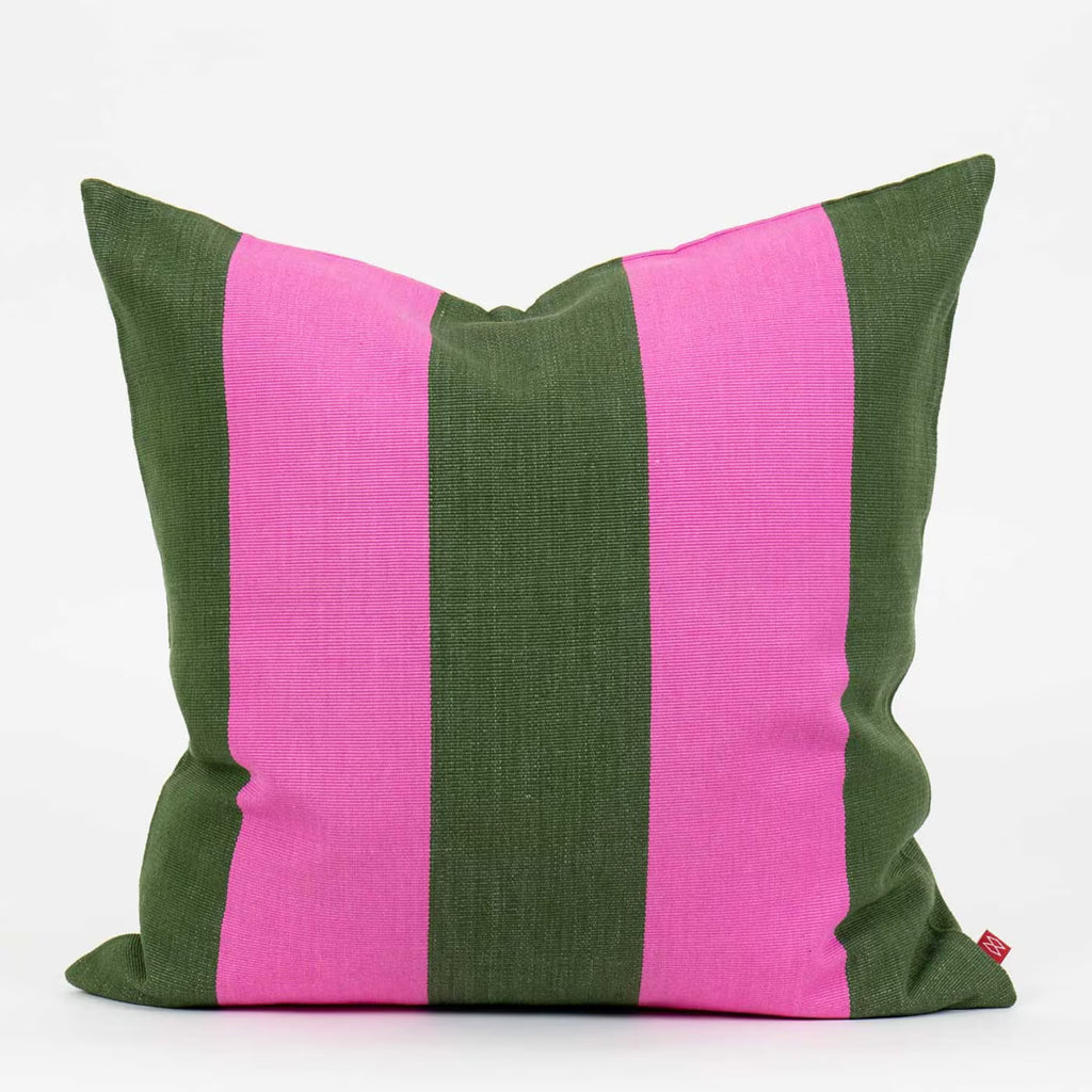 A cushion cover in a durable, handwoven reps quality. The same pattern appears on both sides, with a zipper along the edge.