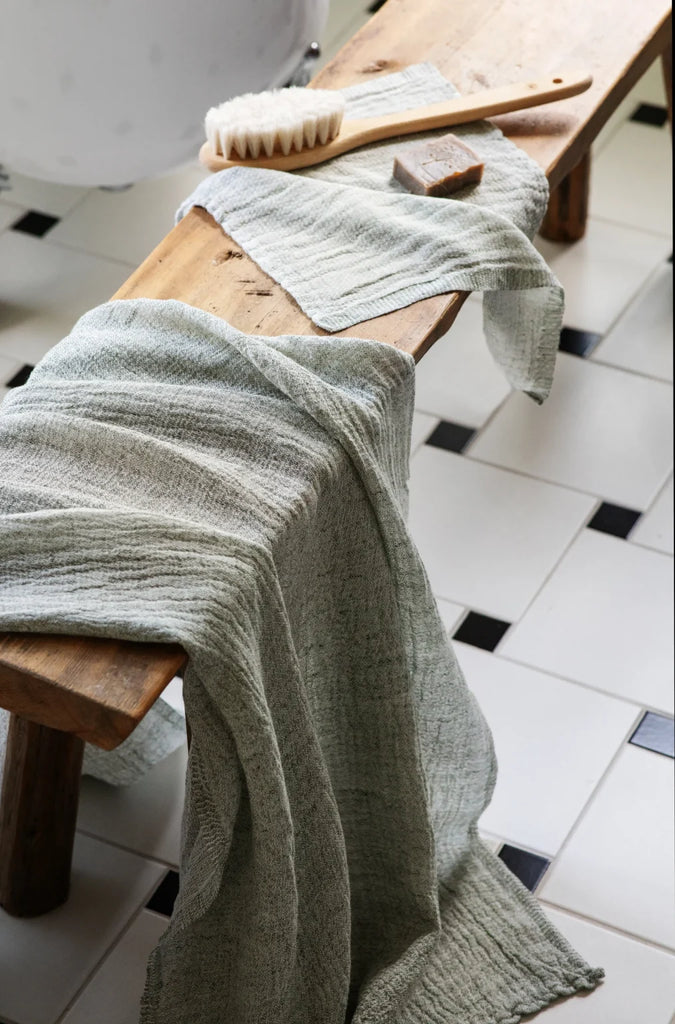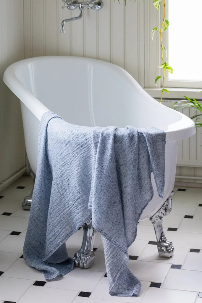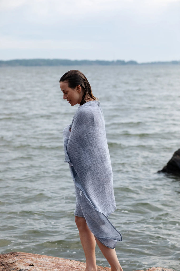 Made of comfortable and breathable natural fibres: Linen, Tencel and cotton. The warp is made of Tencel Lyocell and cotton fibre and the weft is made of linen yarn.