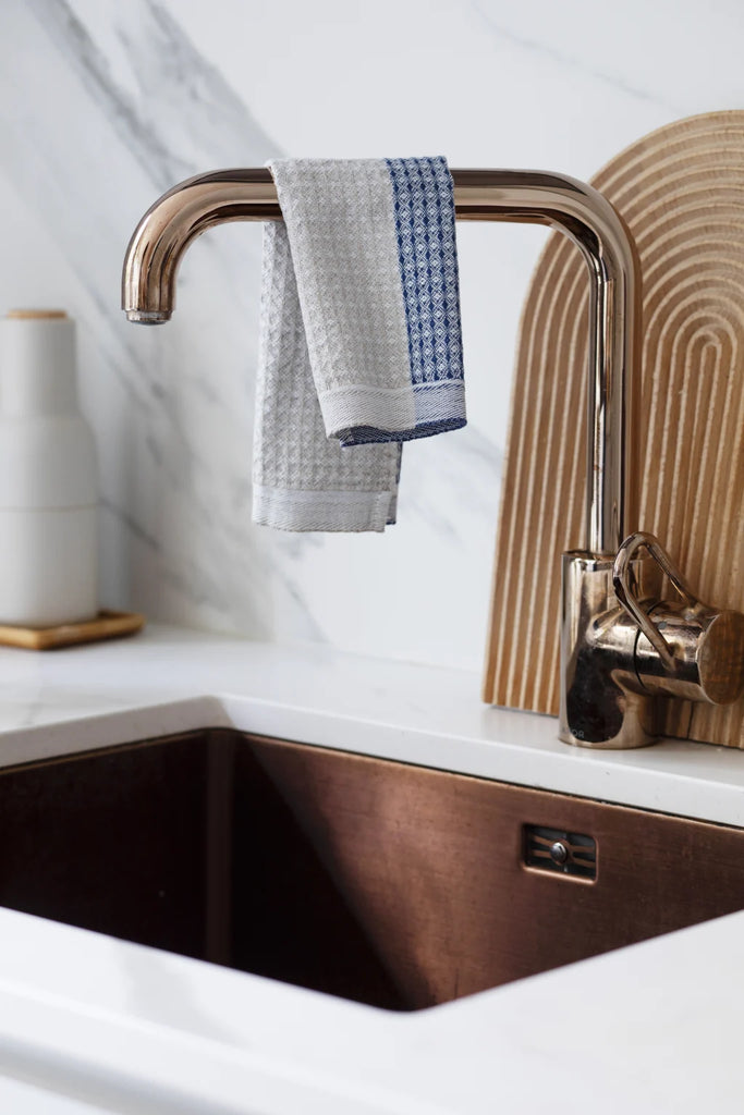 The EEVA dishcloth is made from a washed linen-Tencel. A lightweight, quick-drying dishcloth is a practical, beautiful and environmentally friendly choice. In the material innovation of Lapuan Kankurit, Tencel has been used alongside absorbent linen. Tencel is a European innovation made from wood fibre using environmentally friendly methods. Linen-Tencel products are really absorbent, and they also dry quickly, so they are hygienic in use.