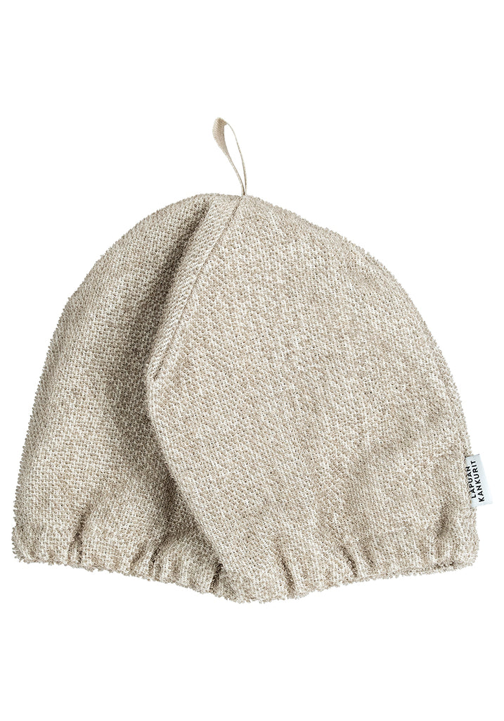 These fabulous sauna hats are made in Finland from linen terry. This is a highly absorbent fibre which is also long lasting. It will also be perfect when you want to protect your hair in the shower / bath.