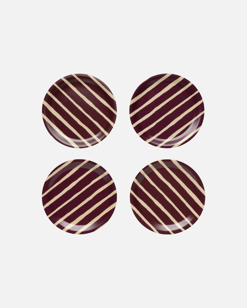 This set includes four coasters featuring the Piccolo pattern. We recommend wiping the coasters clean with a damp cloth or washing them by hand. Do not soak.