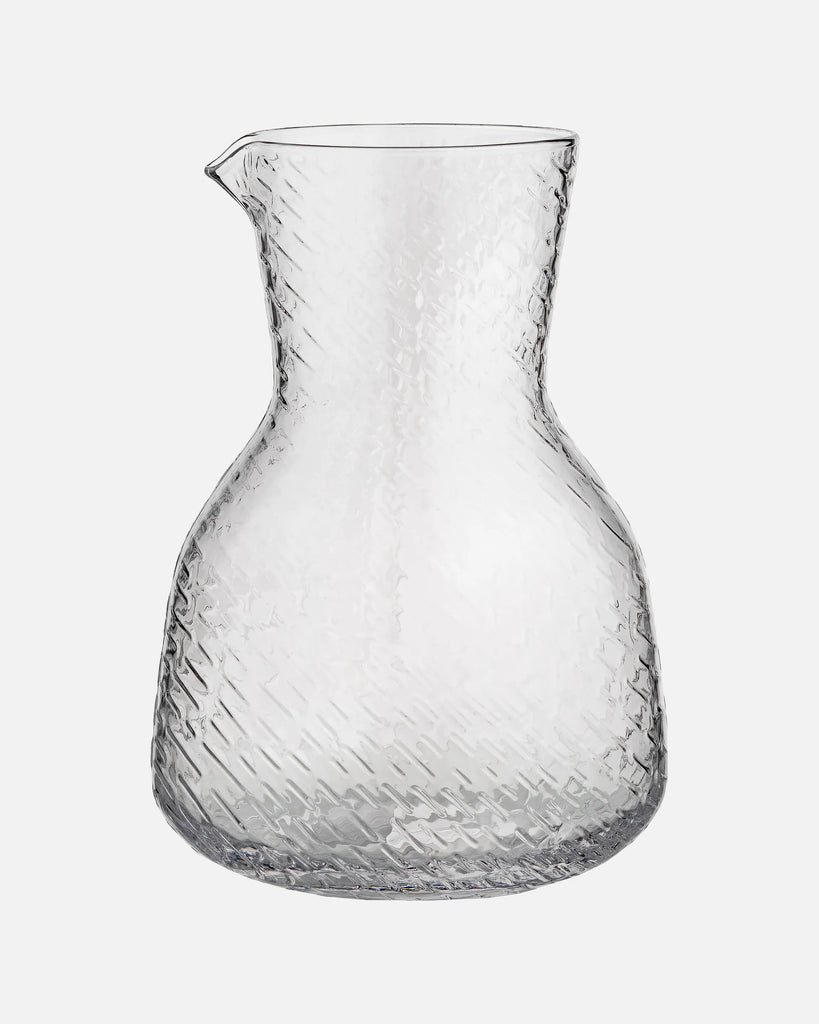A sophisticated, nuanced, and palpable feel of rain has been captured in the glass products as an organic, relief-like surface structure applied to the surface in a sketched manner that is typical for the designer.