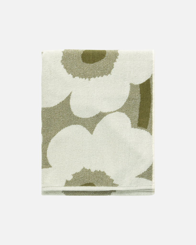 Marimekko 2025 Unikko Bath Towel Collection (Green Umber, Cream)