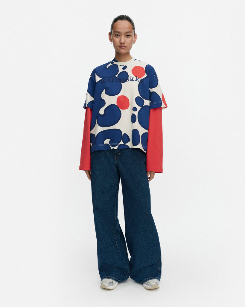 Marimekko t-shirts are cut using the whole width of the fabric, and therefore their appearance may vary slightly. Each item is unique.