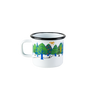 Moominvalley is featured on this enamel Muurla Mug. Muurla’s enamelware consists of a carbon steel core that carries a double-coating of enamel. The products are durable and light. Due to these traits the items can also be used outdoors, in addition to traditional settings.